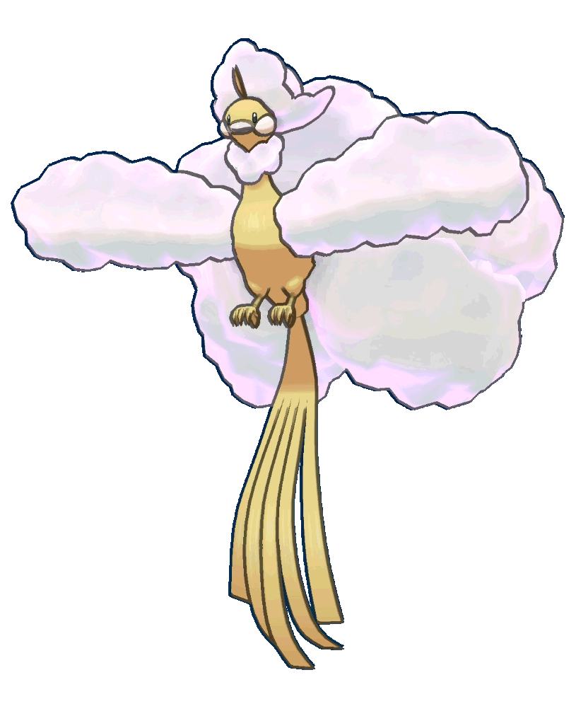 "ALTARIA dances and wheels through the sky among billowing, cotton-like clouds. By singing melodies in its crystal-clear voice, this POKEMON makes its listeners experience dreamy wonderment."