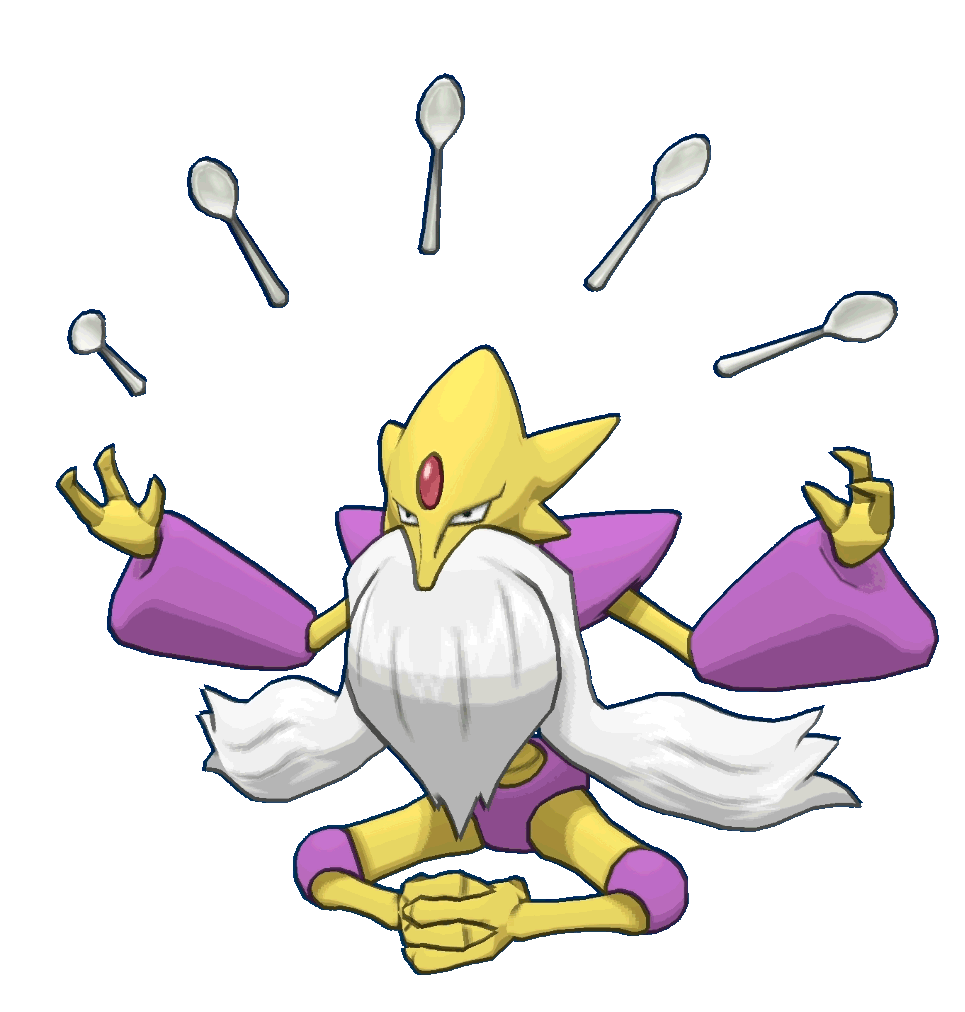 "Alakazam's brain continually grows, making its head far too heavy to support with its neck. This Pokémon holds its head up using its psychokinetic power instead."