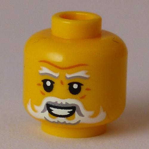 Minifig Head Hibernus, White and Grey Eyebrows, Bears, Moustache, Smile with Teeth / Angry