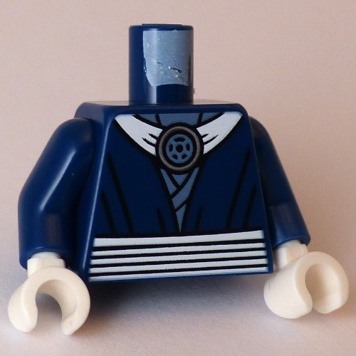 Torso, Ninja Robes, White Collar, Belt, Silver Medallion print, Dark Blue Arms, White Hands
